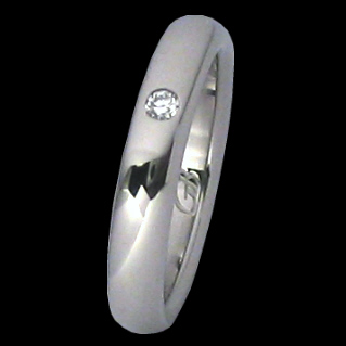 Titanring aussen abgerundet und einem kleinen Brillianten. Diamant mit Durchmesser 1,75mm. Farbe Top Wesselton, lupenreine Qualität. (andere Steingrössen auf Anfrage erhältlich)